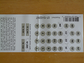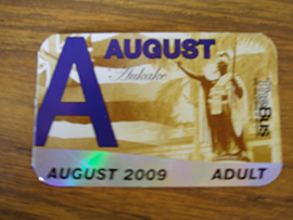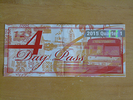 ◆ 5ドルを払って有効期限を書いたシールを貼ると、バスに1か月乗り放題です。