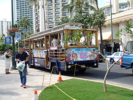 ハワイの交通移動手段には、唯一の公共機関であるザ・バス、その他にワイキキ・トロリー、OLIOLIトロリー(JTB)、