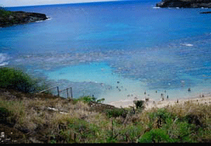 さて、そうこう30分ぐらい乗っただろうか。ハナウマベイに到着。