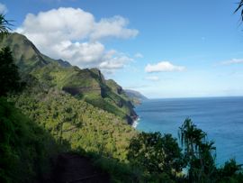 歩きながら振り返ると、今来たケエビーチの景色が見える。だいたい目的のハナカピアイビーチまではおよそ