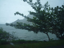 途中、クアロアランチ付近でスコールに会い、車外は土砂降りとなっていた。